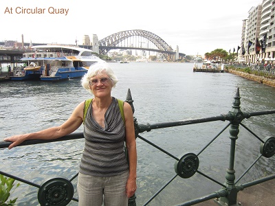 We left, and the weather remained dry. So we walked across the Domain, through Martin Place, and got on a train to Milson's Point, on the north side of the harbour; walked back across the harbour bridge (in strong winds – only a few bridge climbers today), back through the Rocks (all very developed, now) and had lunch back in the Gateway Food Court.